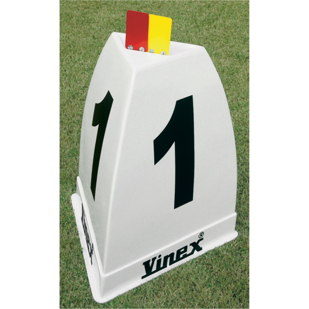 Made of moulded fiberglass, light - weight and stackable design for easy packing and transportation. Triangular design provides visibility from all sides. False start indicator installed on Top.
